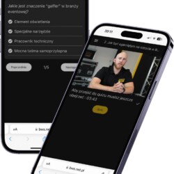 Na potrzeby szkolenia pracowników w BWS Event Support stworzyłem serię filmów szkoleniowych nagranych w biurze klienta z Dyrektorem Technicznym firmy. Filmy mimo dużej dawki informacji są z humorem i zjadliwe nawet dla najbardziej rozkojarzonej „Zetki”. Po każdym filmie jest ułożony z pomocą AI (na podstawie transkrypcji) quiz wiedzy, który po zaliczeniu odblokowuje kolejny film.